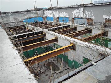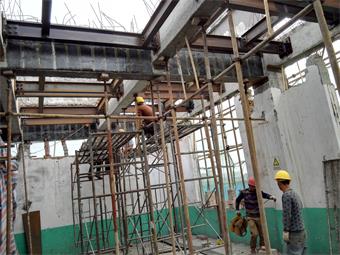 成都金開(kāi)生物工程有限公司發(fā)酵車(chē)間局部梁、板改造加固項(xiàng)目,原結(jié)構(gòu)體系為鋼筋混凝土框架結(jié)構(gòu)。因增加設(shè)備荷載并對(duì)相應(yīng)局部梁、板進(jìn)行加固修復(fù),使結(jié)構(gòu)達(dá)到安全狀態(tài),涵蓋了以下施工內(nèi)容:局部樓板拆除與恢復(fù)施工;新增板底鋼梁制作安裝施工;梁底、梁面粘鋼加固施工;梁底斜截面粘貼碳纖維加固施工;對(duì)局部阻礙部位建筑物待改造后進(jìn)行恢復(fù)工作;、完成施工區(qū)域范圍活載位移并搭設(shè)有效支撐進(jìn)行卸荷措施;